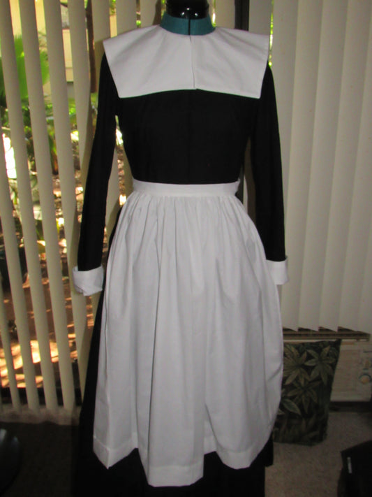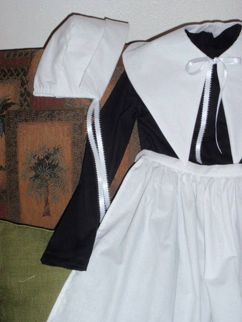 1770s 4 Pc Colonial Early American Pioneer Pilgrim Costume for Teens Adults Dress Apron Collar Coif